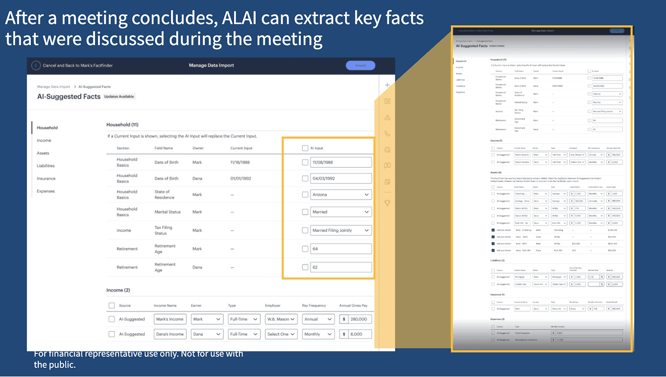 I also designed the data annotation system that let advisors train the model over time, turning post-meeting review into a feedback loop that improved accuracy without adding friction.